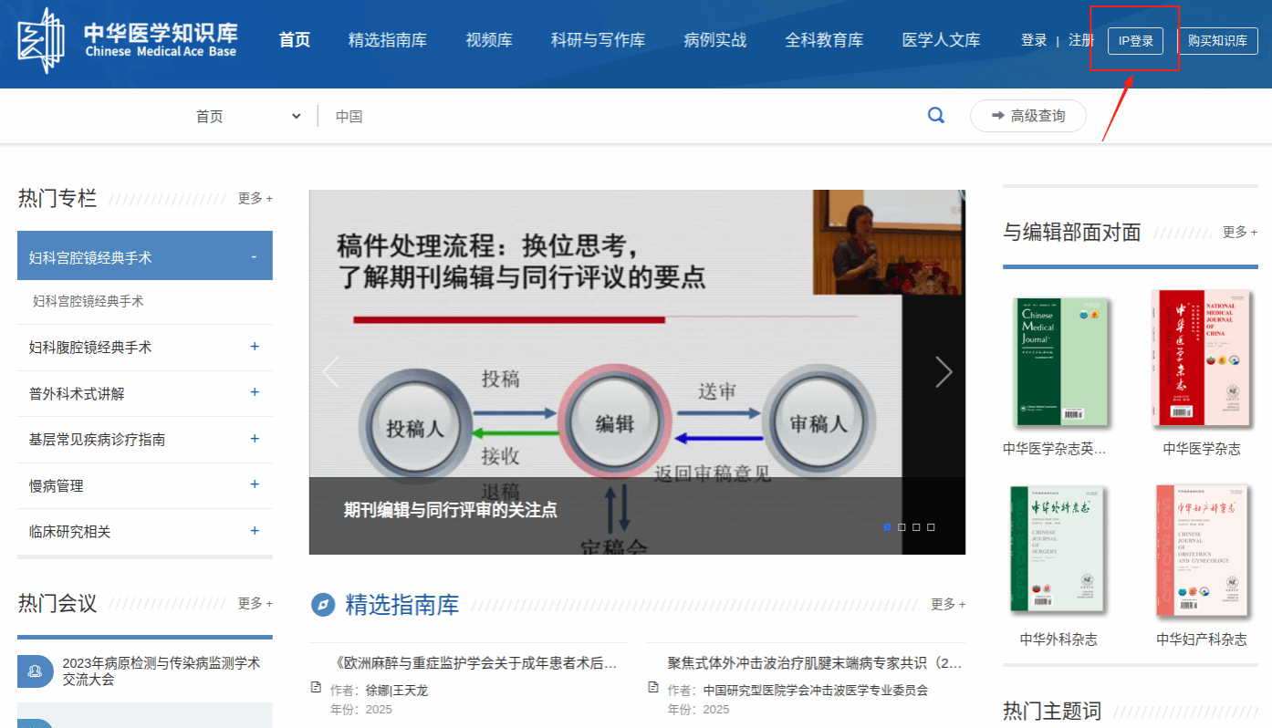打开网址,右上方点击【IP登录】,按需点击模块使用,亦可输入检索词搜索相关资料。