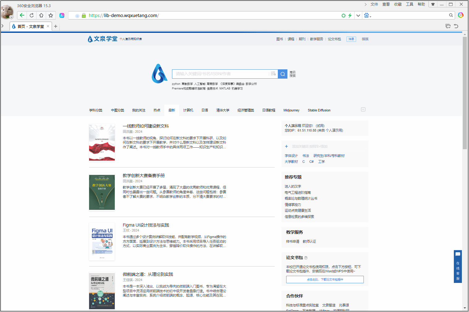 3. 学术文献和大众阅读资源没有并发用户限制,教材类电子书资源限定5个并发用户。